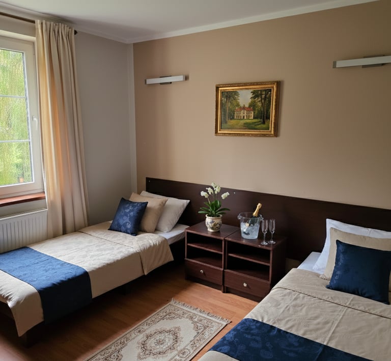 Pokoje 1-, 2- i 4-osobowe – komfort i styl w zabytkowym otoczeniu